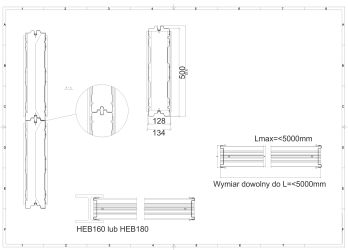- długość przęsła 5 m (osiowy rozstaw słupów)