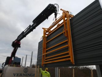 Chwytak montażowy to praktyczne rozwiązanie, które znacząco przyspiesza montaż ekranów akustycznych z paneli. Umożliwia bezpieczne podnoszenie i precyzyjne ustawienie panelu podczas pracy z dźwigiem, HDS-em lub żurawiem samochodowym. Dzięki temu montaż przebiega sprawniej, a ryzyko uszkodzenia elementów jest ograniczone do minimum.
